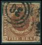 1854. 4 RBS nøddebrun. Attest Grønlund.