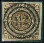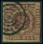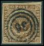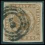 1854. 4 RBS nøddebrun med nr. stp. 1: København.