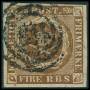 1854. 4 RBS gråbrun med nr. stp. 5: Aarhus.