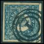 1851. 2 RBS blå Ferslew pl. I-69 type 3. Attester CAM og LN.