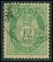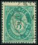 1885. 5 øre grøn med variant: Farge i bell of ramme 2 type 3. NK. (52IIa)