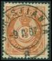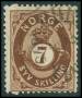 1882. 20 øre rødbrun med variant: Hvid plet i O i Norge. NK. (v1)