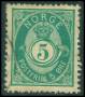 1885. 5 øre grøn med variant: Deformt M, type 1. NK. (52IIa)