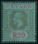 CEYLON. 1921. 20 R. rød, lysblå, George V. Uden gummi. Mi. 170,- €