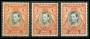 K.U.T. 1938-41. 20 c. orange/sort i alle 3 takninger. Mi. 139 €