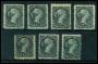 CANADA. 1868. ½ c. sort. 7 stk. i nuancer og uden lim. Mi. 630 €