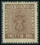1872. 30 øre brun med stor plet mellem 3 og 0.