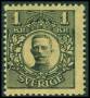 1911. 1 kr. sort, gullig vm. KPV. Facit (96Bz) 2600,-