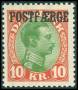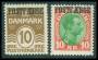 1930. 10 øre brun og 10 kr. rød/grøn. AFA 1450,-