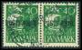 1930. 40 øre grøn i par med variant: Farveplet i flaget. AFA 5000,-