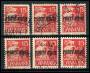 1936. 15 øre rød, tp. IA, planche med 6 mærker. AFA 2520,-