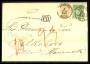 1893-94. Våbentype, 5 Cents, grøn og Leopold II, 10 Cents, rød. Opfrankeret på 10 Cents helsagskonvolut. Sendt fra ANVERS 16.AVRIL.1902 til Aachen i Tyskland.