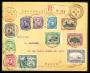 1915. Albert I & Bygninger, komplet sæt. Rekommanderet brev sendt fra STE-ADRESSE 24.X.15 til Paris i Frankrig. NB. 3 Cents, grå og 65 Cents, vinrød/sort mangler ikke på dette sætbrev, de udkom nemlig...