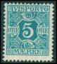 1907. 5 kr. rød/grøn. AFA 5000,-