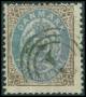 1875. 50 øre brun/blåviolet med omv. vm. minus tak i toppen.