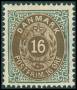 1895. 16 øre grå/brun. 9 stk. med trykbeskrivelse.