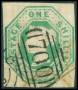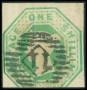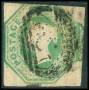 1847. 1 sh. grøn beklippet i syd. AFA 4500,-