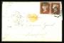 1855-57. 2 d. blå pl. 5 pg 6 i par, begge med minus hjørne. SG. (34-35) (løse) 280 £