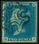1857. 2 d. blå, I-K pl. 6. SG. (35) 70 £