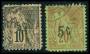 NOSSI-BE. 1889. 2 stk. provisorie forfalskninger.