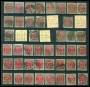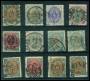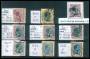 Planche med diverse overtryksmærker med beskrevne varianter m.m.
