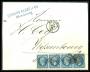 1853. 20 c. blå Napoleon i vandret 4-stribe på brev.