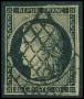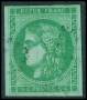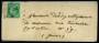 1849. 15 c. grøn let beklippet på 2 sider på brev, mindre rift i højre side af brevet. Yvert (single på brev). 1800 €