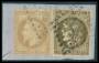 1870. 30 c. brun på klip med 10 c. gulbrun. AFA 2200,-
