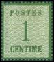 ELSASS-LOTHRINGEN. 1870. 1 c. grøn, med netryks-spidser nedad. Medfødt misfarvning i papir til venstre for "1". AFA 3.000,-