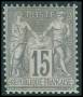 1877. Allegorie, 10 Centimes, sort/lille og 15 Centimes, blå. Brev sendt fra PARIS 20.JUIL.1899 til St. Gallen i Schweiz. Ankomststemplet ST.GALLEN 21.VIII.99.
