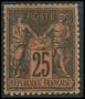 1877. Allegorie, 25 Centimes, sort/rosa. Brev sendt fra Menton via VINTIMILLE A MARSEILLE 24.MARS.1893 til München i Tyskland. Ankomststemplet MUENCHEN 26.MAR.93.