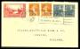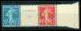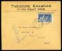 1929. Jeanne dArc, 50 Centimes, blå (par) og Såerske, 25 Centimes, gulbrun (2). Brev sendt fra LE HAVRE 23.3.1929 til Ipswich i England. Desuden rød udstillingsmærkat.