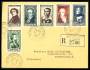 1951. Berømte Franskmænd, komplet sæt. Rekommanderet brev sendt fra TROYES-QUARTIER ST.MARTIN 31.8.1951 til København i Danmark.