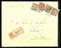 1920. 15 øre rødlilla og 35 pf. brun x 3 på R-brev.