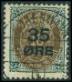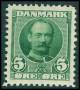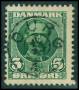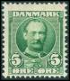 1905. 5 øre grøn, med variant: D i Danmark retoucheret. AFA 1500,-
