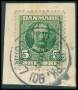 1907. 5 øre grøn på klip med pragt lapidar stp. Nord Fyenske JB.