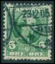 1907. 5 øre grøn pos. 91 med variant: Stor eftergravering til højre for kongens hoved på postkort.