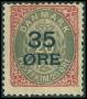 1912. 35/20 øre rød/grå med stor perlefejl.