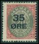 1912. 35/20 øre rød/grå tryk 7 pos. 64: Dobbeltpræg i venstre side fra D til P samt i D og A.