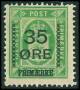 1915. 35/32 øre gulgrøn tryk 3. Attest CAM.