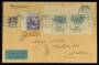 1930. 15 øre violet og 5 øre brun samt 5 kr. utakket Robert Svendsen mærkat i par på luftpostbrev til Malmö.