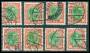 1928. 10 kr. rød/grøn x 8. AFA 2000,-
