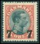 1926. 7/27 øre rød/sort med variant: Hvid plet i R i Danmark. AFA 800,-