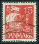 1927. 15 øre rød med variant: Storsejl retoucheret. AFA 1200,-
