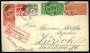 1930. 10 øre grøn, 15 øre rød x 2 samt 2 andre mærker på R-brev til Schweiz.