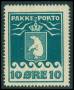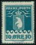 1910. 10 øre blå takket 3 sider med kort hjørnetak.