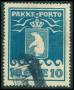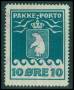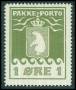 1915. 1 øre olivengrøn på klip med rødt skjold stp. Sukkertoppen (24.03).