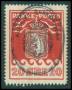 1915. 20 øre matrød kartonpapir.