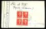 1936. 15 c. rød x 4 på brev til Berlin med kontrol banderole.