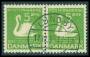 1935. 5 øre grøn i par med variant: Dobbeltpræg forneden.